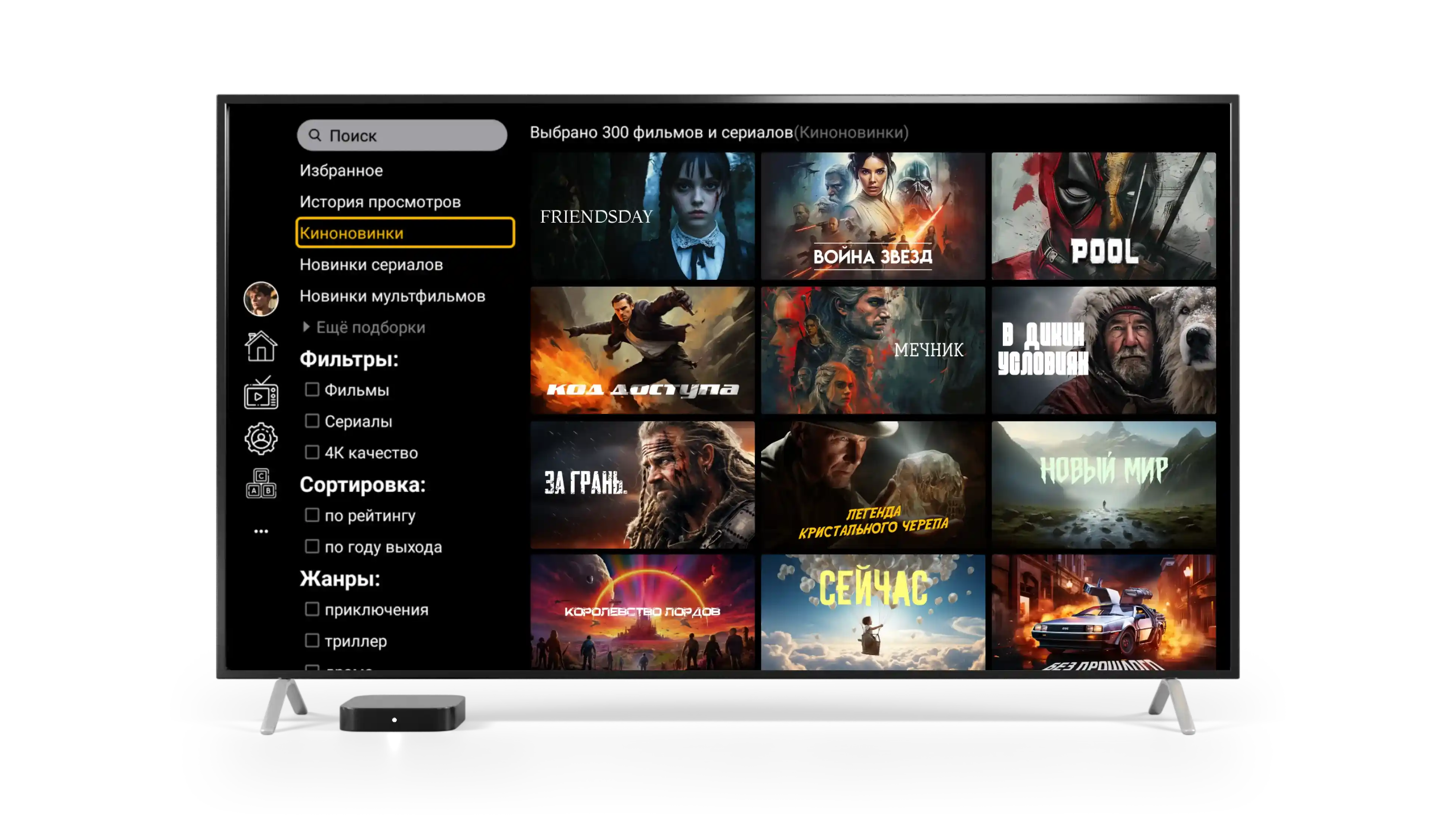 Регулярно обновляем каталог приставки и добавляем большое количество киноновинок. Смотрите всё актуальное самыми первыми